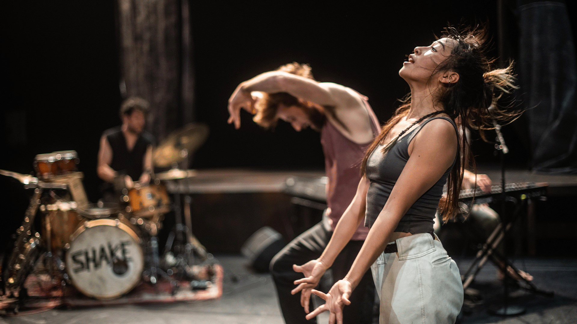Shake Shake Shake is an exhilarating dance concert, with music as its engine and inspiration as its fuel. A six-piece live band of dancers and musicians sings about being stuck and shaking loose, chasing the top and hitting rock bottom. Shake Shake Shake is about generating vitality and pushing back. It's about the feeling of being lived by beliefs from the outside world that creep under your skin without you noticing. And it's about music, as a contagious invitation to shake yourself loose and get things moving. Ultimately, it's about finding your own alternative direction together.